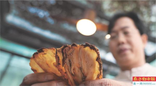 第五代继承人杨彬向南都记者展示当归片。经过选料、回潮、清洗、分类、剪切、浸泡、蒸制、刨片、打皮一道道工序,这味地道药材当归“华丽变身”。