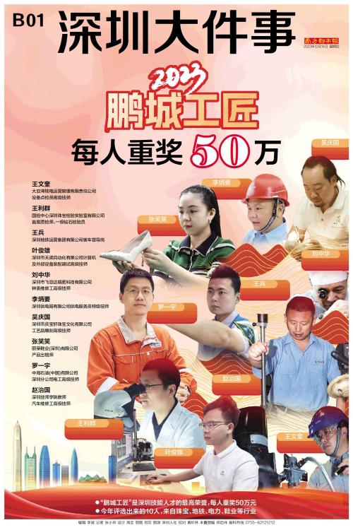 “鹏城工匠”是深圳技能人才的最高荣誉,每人重奖50万元 今年评选出来的10人,来自珠宝、地铁、电力、鞋业等行业 王文奎 大亚湾核电运营管