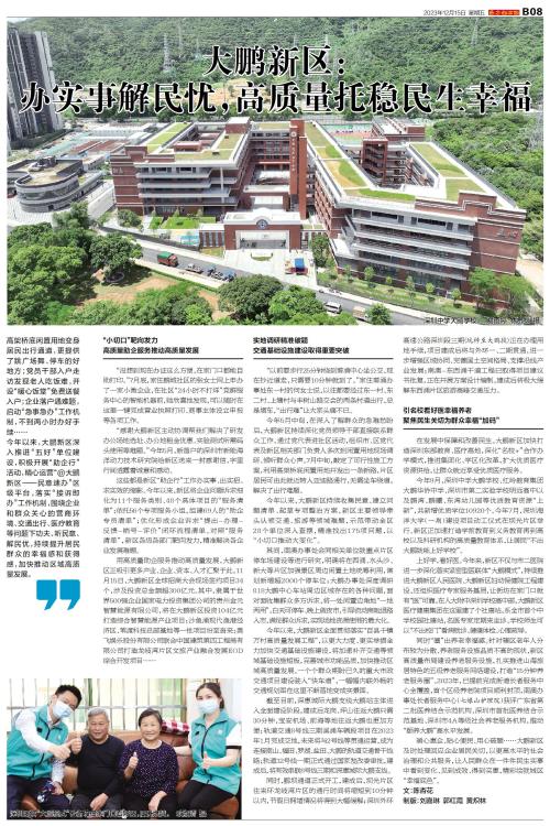 大鹏新区:办实事解民忧,高质量托稳民生幸福