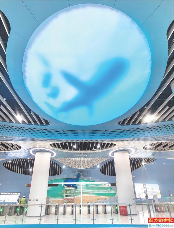 大梅沙站被誉为“深海之光”,艺术大灯、层高变化、采光天窗等充满“光”和“海”元素,海浪、鲸鱼等增添艺术童趣。