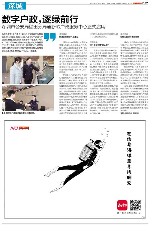 为整合资源、提升服务,深圳市公安局福田分局将通新岭、华强北、南园、华富、八卦岭5个派出所户政业务整合,建设启用了通新岭户政服务中心。2023年12月18日,通新岭户政服务中心举行揭牌仪式,正式启用