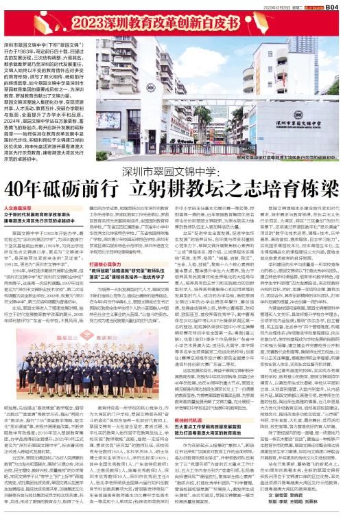 深圳市翠园文锦中学(下称“翠园文锦”)开办于1983年,笃定前行四十载,回望过去的发展历程,三次结构调整、六易其名,都承载着罗湖乃至深圳的时代发展重任,文锦人始终以不变的教育情怀应对多变的教育形势