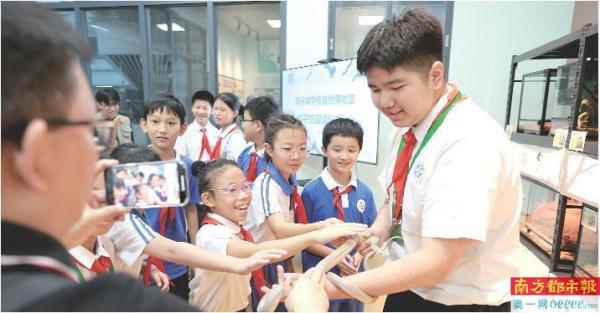 深圳市南山区南头城学校的自然博物馆,是一所置身校园中并且拥有“活体”爬行类动物的自然博物馆,小小的博物馆承载着收藏、研究、展示、教育以及知识传播等功能,与所在地发生着密切的联系,反映出人与自然的关系。校园里的自然博物馆,让孩子们身临其境,近距离观察、探索、感受、了解大自然中有趣的生物们,保持纯真的好奇心,在观察和学习的过程中,学会善待生物,真诚热爱自然。南头城学校与虫影品牌进行创新校企合作模式,共同开发打造围绕自然博物馆的课程和系列活动,充分利用地理优势、企业资源成为学生优质学习资源和实践基地。在短短的一年里,课程覆盖二、五年级全员,四至八年级社团成员,每天下午放学后所有学生都可以接受预约到自然博物馆参观。