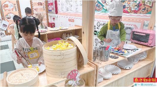 幼儿园环境是课程资源的一部分,属于隐形课程。深圳市南山区教科院附属幼儿园结合幼儿年龄特点,营造了宽松和谐的食育环境,通过师生共同创设,打造了南粤美食一条街、幸福食育坊、快乐生活吧等具有本土文化和园本特色的场景,各班也注重生活环境的建设,营造了浓郁的生活气息,丰富了幼儿的生活经验,记录了幼儿的学习过程。丰富多彩的食育活动,不仅让幼儿吃得好,更把食育知识、动手能力、养生理念等融入主题活动,美“食”美“育”,助力儿童成长。