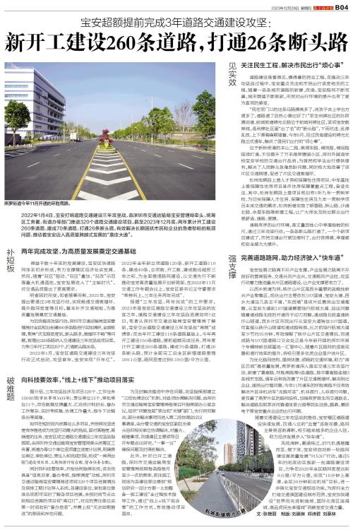 2022年1月4日,宝安打响道路交通建设三年攻坚战,由深圳市交通运输局宝安管理局牵头,统筹区工务署、街道办等部门推进320个道路交通建设项目。截至2023年12月底,两年累计开工建设260条道路,