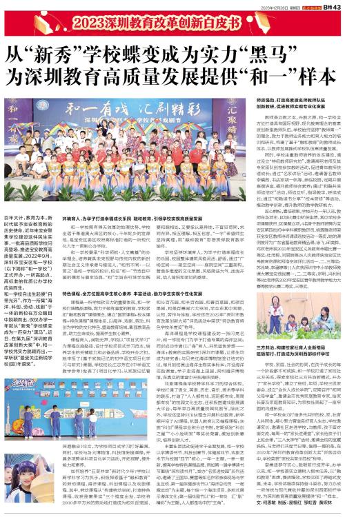 从“新秀”学校蝶变成为实力“黑马” 为深圳教育高质量发展提供“和一”样本