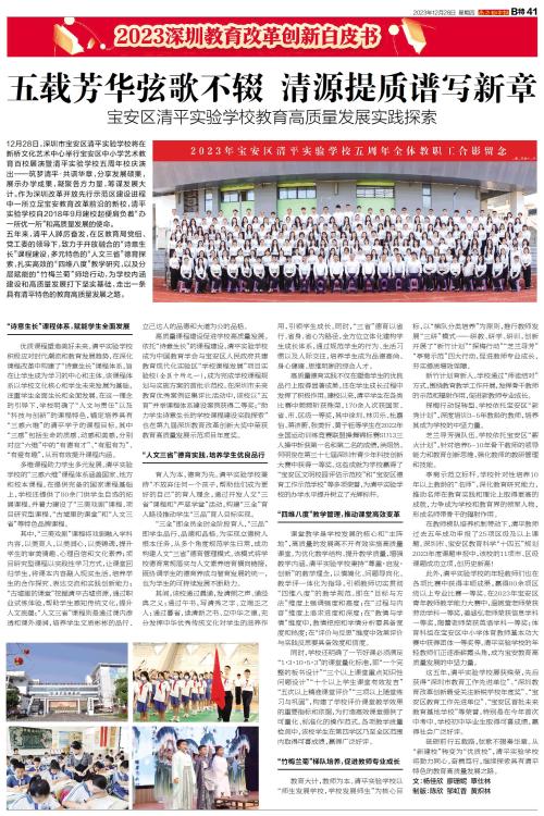 12月28日,深圳市宝安区清平实验学校将在新桥文化艺术中心举行宝安区中小学艺术教育百校展演暨清平实验学校五周年校庆演出——筑梦清平·共谱华章,分享发展硕果,展示办学成果,凝聚各方力量,筹谋发展大计