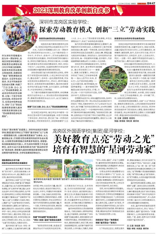 在践行“美好教育”的道路上,深圳市龙岗区外国语学校(集团)星河学校(以下简称“星河学校”)以“让每一颗星星都闪亮,让美好教育更美好”为使命,从儿童视角出发,打造星河劳动教育特色的学生成长路径,以创