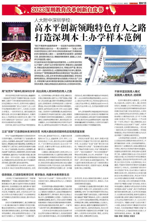 高水平创新领跑特色育人之路 打造深圳本土办学样本范例