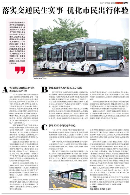 交通品质的提升直接关乎每位市民的出行体验感和幸福感。根据《深圳市人民政府关于印发2023年民生实事项目的通知》要求,深圳市交通运输局量化民生实事指标,积极推进公交线路优化调整、公交站台改造、非机动