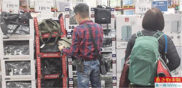 2023年12月26日下午,南都湾财社记者走访了山姆龙华店,店内有不少港客,多为家庭组合。据山姆员工介绍,港客爱买蟹黄面、纸巾、面包糕点等商品,“有性价比的都喜欢”。最近买节庆用品、干货的也多了。