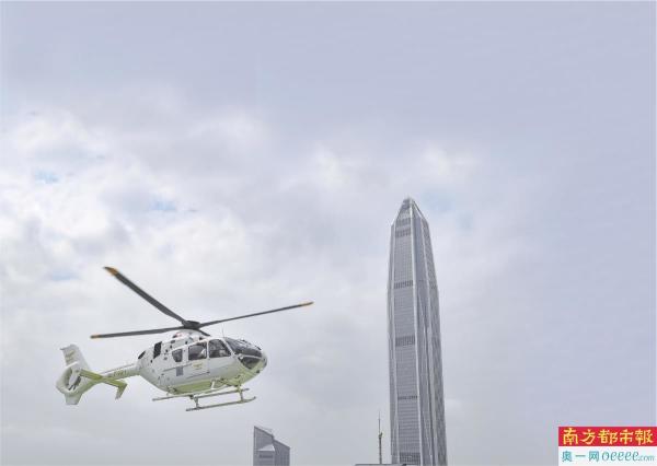 2. 东部通航的直升机准备降落在深圳市中心的大中华直升机场。