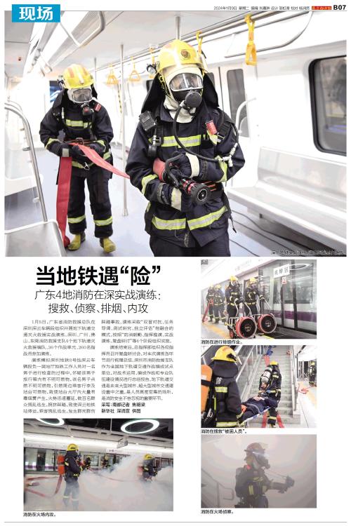 1月5日,广东省消防救援总队在深圳深云车辆段组织开展地下轨道交通灭火救援实战演练。深圳、广州、佛山、东莞消防救援支队4个地下轨道灭火救援编队、36个作战单元、260名指战员参加演练。 演练模拟深