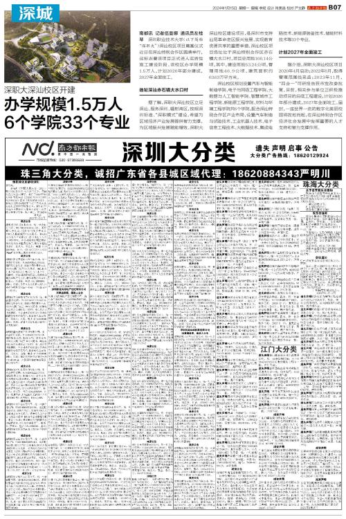 南都讯 记者伍曼娜 通讯员左桂琴 深圳职业技术大学(以下简称“深职大”)深汕校区项目奠基仪式近日在深汕特别合作区圆满举行,这标志着该项目正式进入实质性施工建设阶段。该校区办学规模1.5万人,计划2