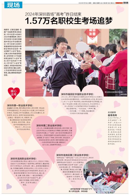 南都讯 记者伍曼娜 根据广东省教育考试院安排,1月10日至14日举行2024年春季高考,其中1月10日至12日举行普通高中学业水平合格性考试,1月13日至14日举行普通高等学校招收中等职业学校毕业