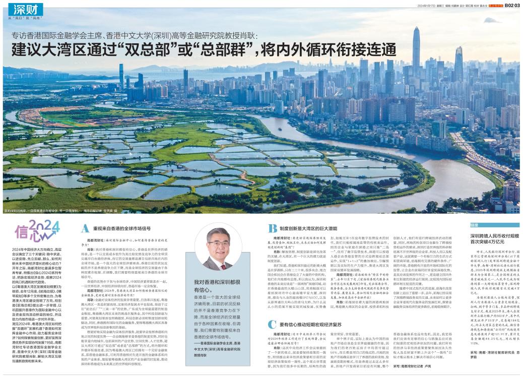 建议大湾区通过“双总部”或“总部群”,将内外循环衔接连通