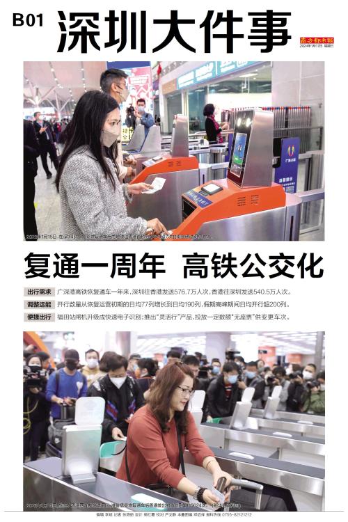 出行需求 广深港高铁恢复通车一年来,深圳往香港发送576.7万人次,香港往深圳发送540.5万人次。 调整运能 开行数量从恢复运营初期的日均77列增长到日均190列,假期高峰期间日均开行超2