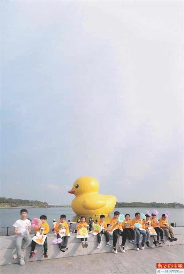 第一眼看到深圳人才公园内由荷兰艺术家弗洛伦泰因·霍夫曼设计的巨型“大黄鸭”时,还在读幼儿园大班的小“砂糖橘”高梓睿就移不开眼了,他说好想到水中央抱抱大黄鸭,出于安全考虑,老师拿出手机拍下了一张他与大黄鸭的合影,帮他圆了这个小愿望。此外,小“砂糖橘”们还在现场拿起了画笔,现场画下了大黄鸭萌趣可爱的形象。