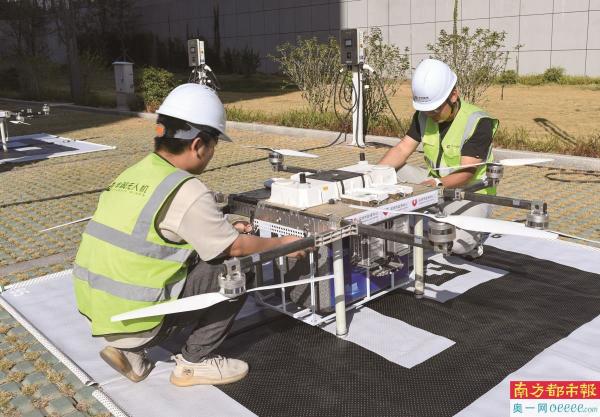 1月19日,在深圳市血液中心,地勤人员在起飞前对无人机进行检查。 新华社发