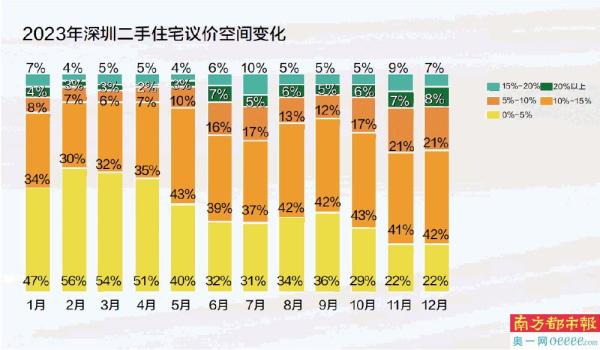 乐有家研究中心数据显示,2023年深圳二手住宅平均议价率最高达到10.7%,也就是一套报价500万的房子,买卖双方议价后,最终成交价与报价相差了50多万。