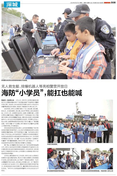 南都讯 记者覃仕林 2月25日,深圳市公安局在福田区海防打私主题教育基地举行“走进福田海防”年度常态化警营开放日第二场活动。参与活动的市民群众和中小学生在与民警零距离互动中感受、体验和了解海防打私