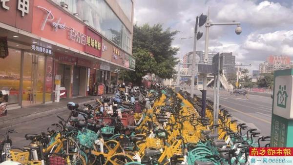 2023年10月,有市民在深圳论坛发帖反映,“宝安固戍地铁E、F出口长期被电单车、共享单车里三层外三层停满,行人通过都困难,固戍二路机动车道长期被这些车辆占用,人行横道都被停满,摩的随意快速穿梭,危险无处不在,小车进出困难,拥堵不堪。”