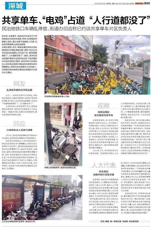 近年来,共享单车、电动自行车成为不少市民短途出行的优先选择。然而,乱停放的问题随之滋生,霸占本就不宽敞的人行道,也给市民带来极大的安全隐患。 记者注意到,近日,有网友通过深圳论坛反映地铁口车辆乱