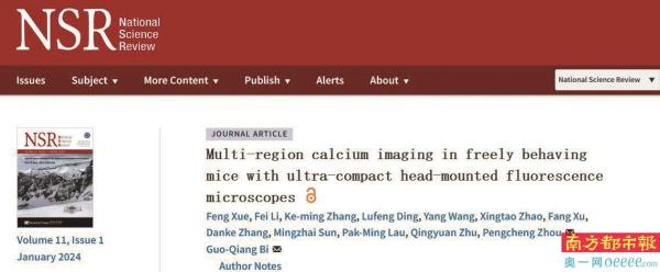 近日,中国科学技术大学、中国科学院深圳先进技术研究院脑疾病与脑认知研究所/深港脑科学创新研究院毕国强课题组和深圳理工大学(筹)周鹏程课题组合作,开发了目前世界上最轻的仅0.43克重的超紧凑头戴式荧光显微镜TINIscope,并在自由活动的小鼠身上实现了对4个海马亚区神经元钙活动的同步成像。