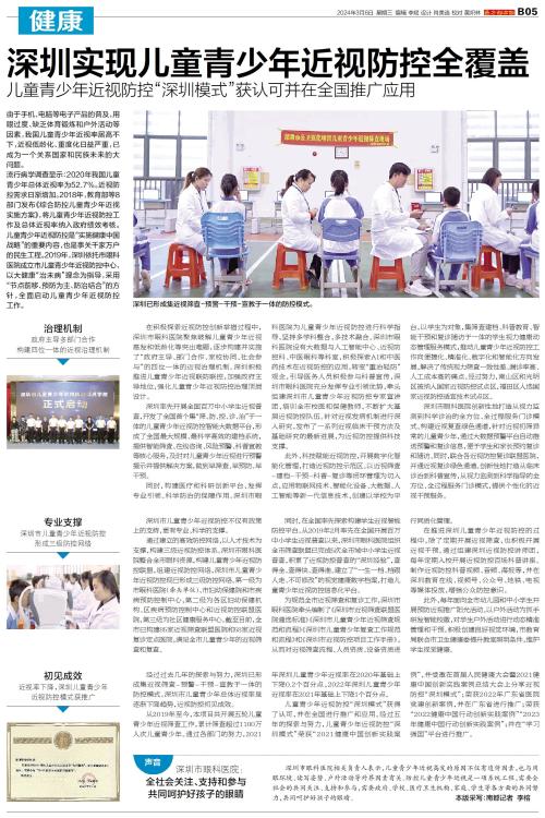 深圳已形成集近视筛查-预警-干预-宣教于一体的防控模式。