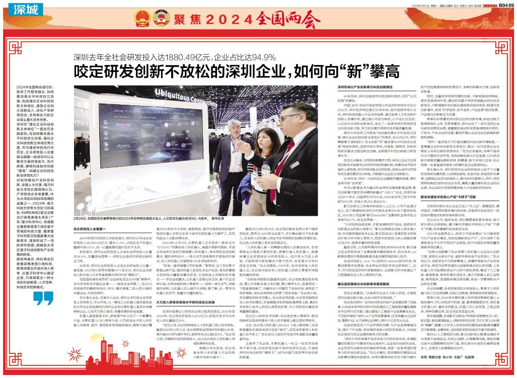 2024年全国两会进行时,政府工作报告提出,加快推动高水平科技自立自强。包括强化企业科技创新主体地位,激励企业加大创新投入,深化产学研用结合,支持有实力的企业牵头重大攻关任务。 深圳在“强化企业