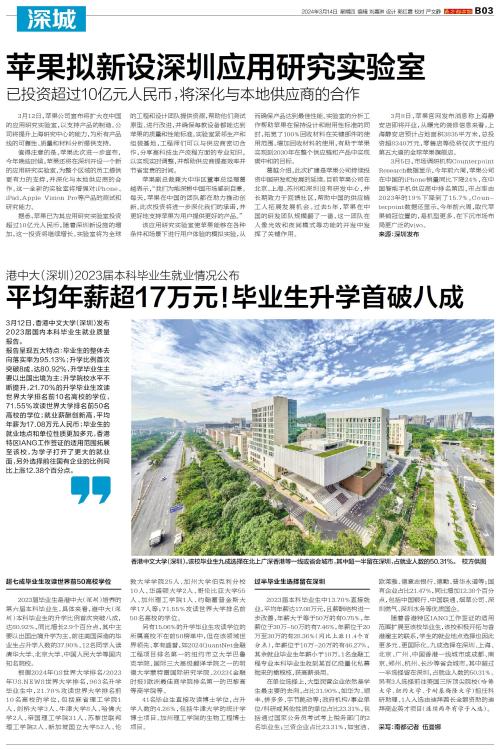 3月12日,香港中文大学(深圳)发布2023届国内本科毕业生就业质量报告。 报告呈现五大特点:毕业生的整体去向落实率为95.13%;升学比例首次突破8成,达80.92%,升学毕业生主要以出国出境