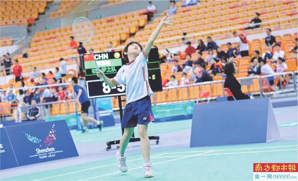 日前,宝安体育馆,全国青少年体育联合会青少儿羽毛球巡回赛总决赛来到决胜时刻,比分为16∶20,来自龙岗区外国语学校(集团)致美学校的彭语晗比分落后。当所有人都认为其将与冠军失之交臂时,她凭借头顶杀球、斜线吊球,连续挽救了5个赛点,获得巡回赛U8女单全国总冠军。