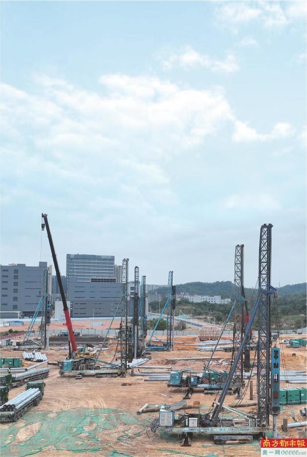 园区位于龙岗区坪地街道,正在进行土方开挖、场地平整、桩基础施工等工作。