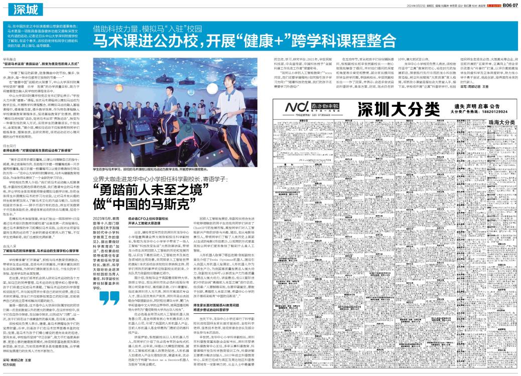 马,在中国历史之中扮演着难以想象的重要角色;马术更是一项既具备强身健体功能又拥有深厚文化内涵的运动。记者近日从中山大学深圳附属学校了解到,在这个春天,该校的老师和同学们借助科技的力量,骑上骏马,追