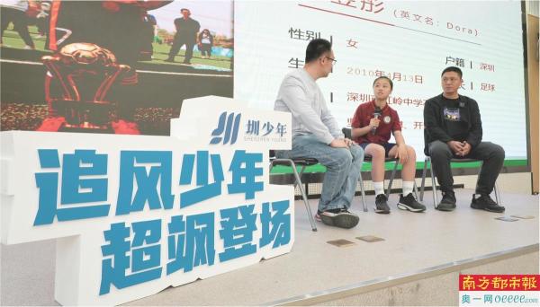 女足小将练昱彤(左二)在“圳少年进校园”第二场分享梦想和心愿。