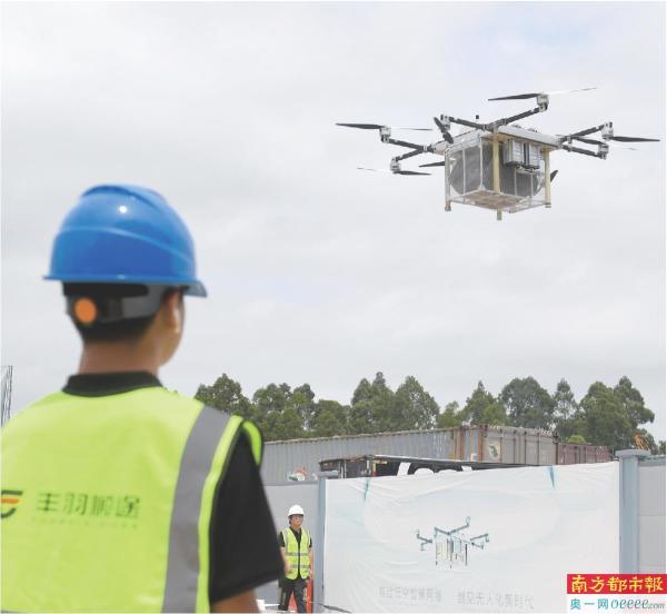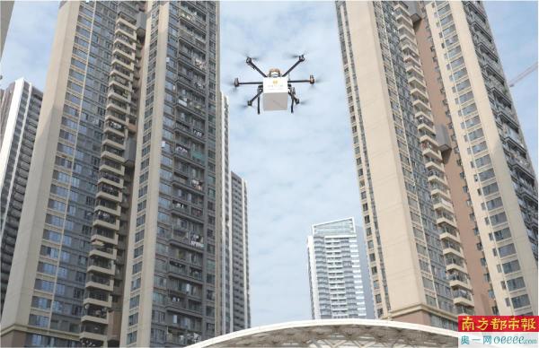 丰翼科技在深圳光明区的无人机低空物流航线正式开通。 新华社发