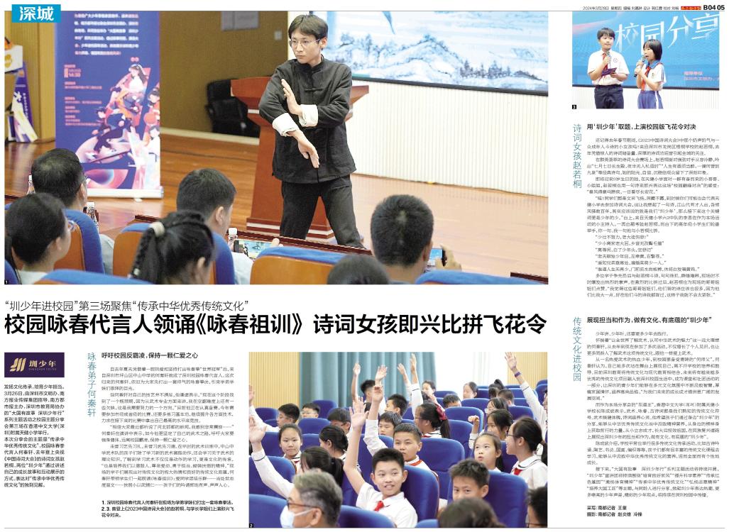 发扬文化传承,培育少年担当。3月26日,由深圳市文明办、南方报业传媒集团指导,南方都市报主办,深圳市教育局协办的“大国有故事 深圳少年行”系列主题活动之校园主题分享会第三场在香港中文大学(深圳)附