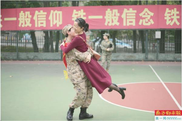 大会结束后,是新兵和亲友们温馨的相聚时间。飒爽女兵,都是父母亲人眼中贴心的“小棉袄”。分别时刻,她们激动地把家人高高抱起、将长辈拥入怀中、和“战友”互相整理胸前的大红花……几次热烈的拥抱、几句殷切的叮嘱过后,不少人都忍不住红了眼眶,流下热泪。