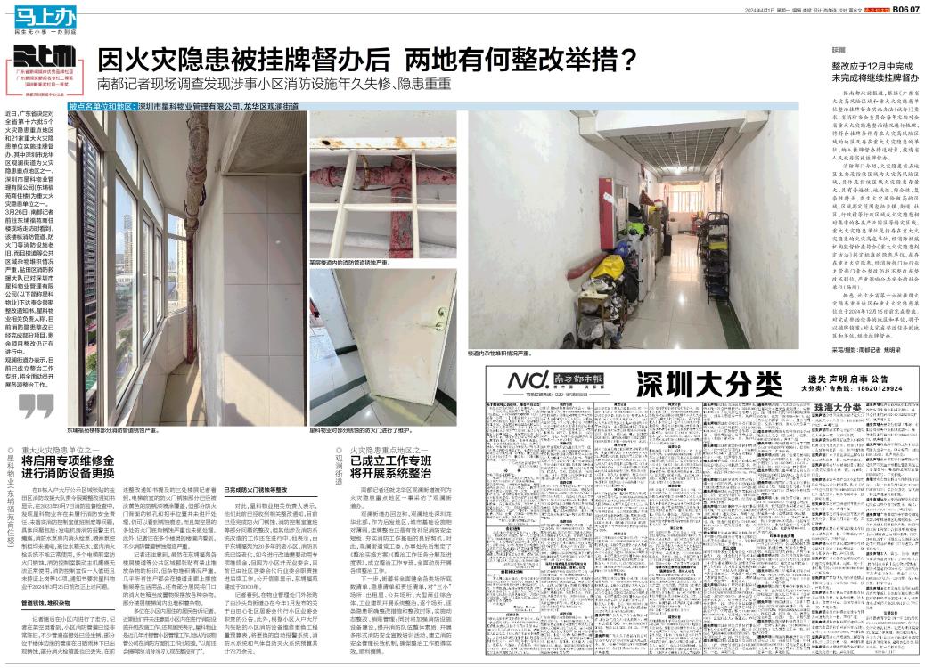 被点名单位和地区: 深圳市星科物业管理有限公司、龙华区观澜街道 近日,广东省决定对全省第十六批5个火灾隐患重点地区和21家重大火灾隐患单位实施挂牌督办,其中深圳市龙华区观澜街道为火灾隐患重点地