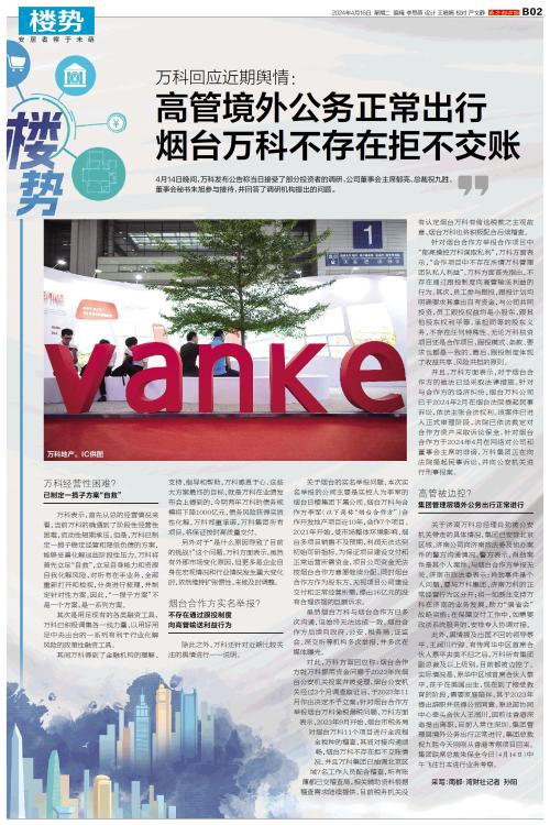 高管境外公务正常出行 烟台万科不存在拒不交账