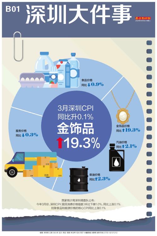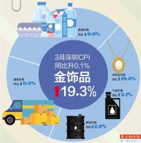 3月深圳CPI同比升0.1% 金饰品↑19.3%