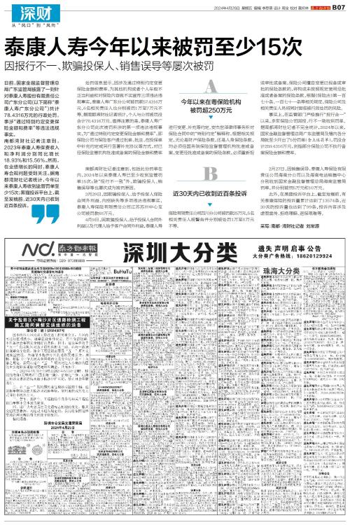 日前,国家金融监督管理总局广东监管局披露了一则针对泰康人寿股份有限责任公司广东分公司(以下简称“泰康人寿广东分公司”)共计78.4316万元的行政处罚,事涉“通过特别约定变更保险金额和费率”等违法