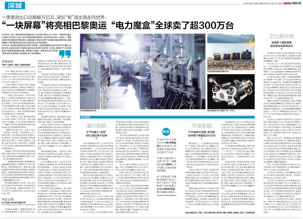 “一块屏幕”将亮相巴黎奥运“电力魔盒”全球卖了超300万台