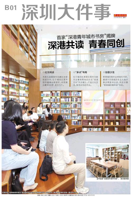◎社交阅读 书房为深港青年创建社交型阅读空间,位于福田区图书馆四楼港台阅读区,内有港台藏书500册、座位15个。 ◎“多点”布局 位于福田区港澳台青年创新创业基地等地的分支“阅读空间