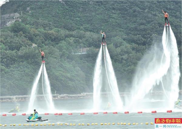 5月1日15时许,小梅沙度假村的水上飞人等活动陆续开展。