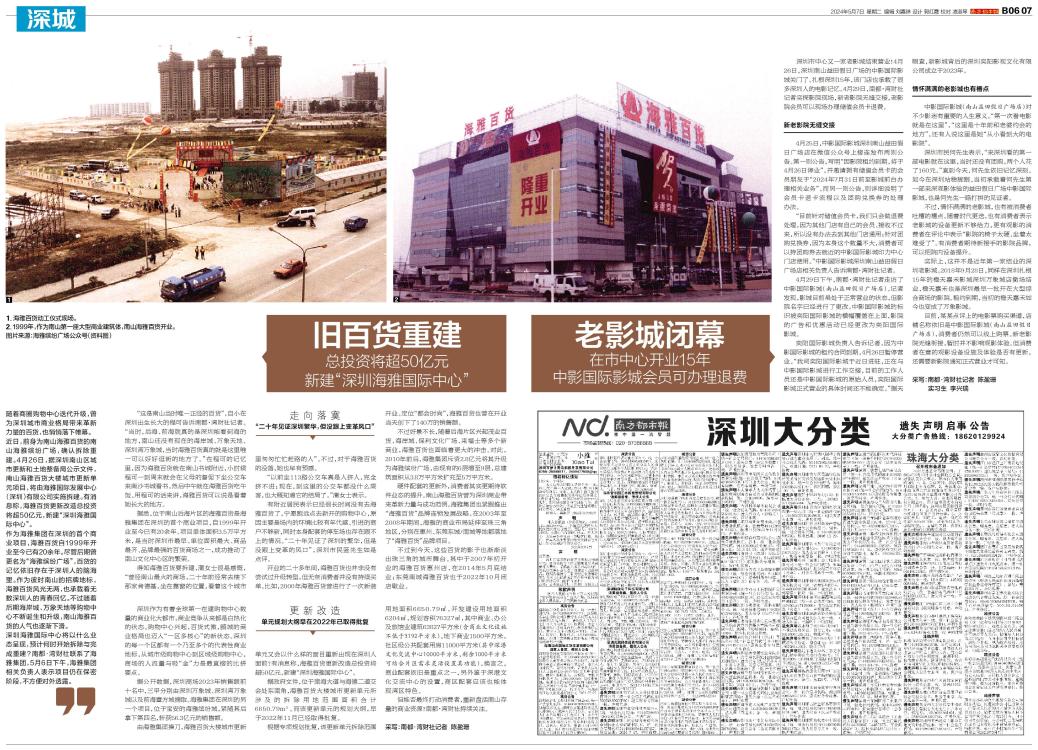 随着商圈购物中心迭代升级,曾为深圳城市商业格局带来革新力量的百货,也悄悄落下帷幕。 近日,前身为南山海雅百货的南山海雅缤纷广场,确认拆除重建。4月26日,据深圳南山区城市更新和土地整备局公示文件