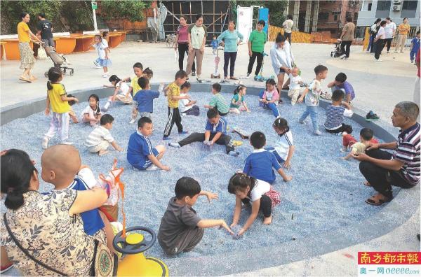 同样作为“活力城村”试点的凉帽新村离甘坑新村不远。这里的城村活力,由深入挖掘的凉帽文化激发。村口的门楼,以现代建筑语言重新演绎了传统的竹条编织工艺;村内的房屋外墙彩绘,也是由凉帽竹编元素而来。坡下,是凉帽村保留下来的几栋老屋。在“活力城村”行动中,这些老屋也被纳入了整体的设计之中,改造提升为遗址公园。这里,是老凉帽人的精神家园,也是新凉帽人的休闲乐园。在靠近山边的地方,凉帽乐园是孩子们最喜欢的地方。架空的篮球场,自篮球场而下的超长滑梯、沙坑、跷跷板、秋千……这些新设施,激发凉帽新村的新活力。