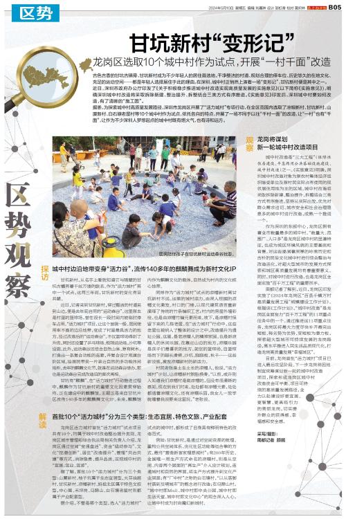 古色古香的甘坑古镇旁,甘坑新村成为不少年轻人的居住首选地。干净整洁的村道、规划合理的停车位、历史悠久的在地文化、充足的运动空间……都是年轻人选择居住于此的理由。在深圳,城中村正悄然上演着一场“变形