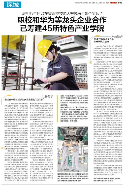 日前,广东省教育厅公布2023-2024学年广东省职业院校技能大赛获奖名单,深圳师生共揽获409个奖项,包括高职组241项、中职组168项,获奖数量居全省前列。 其中,深圳职业技术大学、深圳信息
