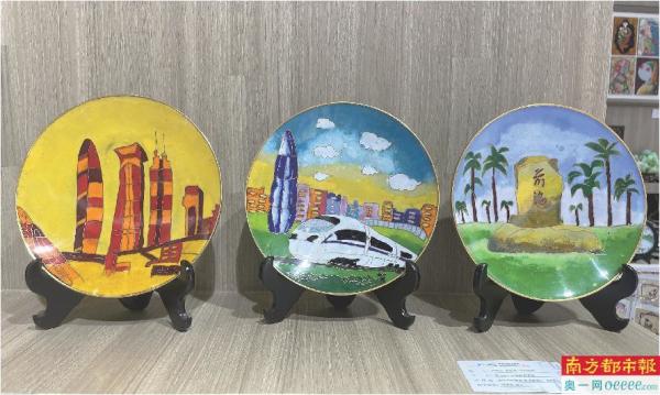 学生制作的景泰蓝(铜胎掐丝珐琅)盘——深圳景观系列作品。